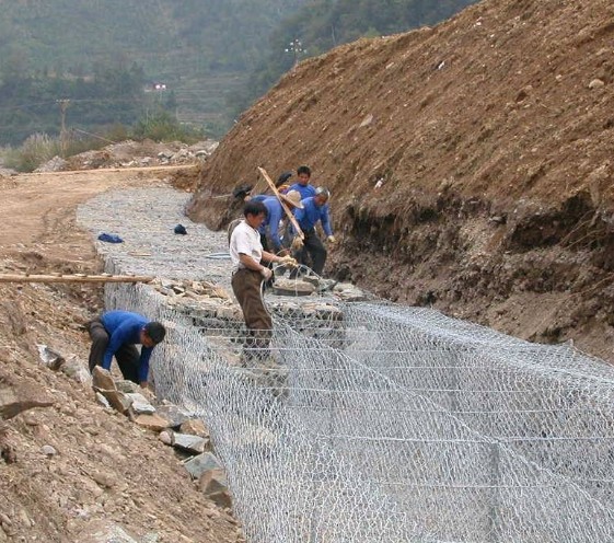 石籠網是金屬線材編織的角形網(六角網)制成的網箱,使用的金屬線徑是根據六角形的大小而不同。如果是金屬鍍層的金屬線六角形,則使用線徑為2.0mm到4.0mm的金屬線,如果是PVC包覆的金屬線編織的六角網,則使用外徑為3.0mm到4.0mm的PVC(金屬)線.外框邊緣的線則使用比六角網線粗一號的線。