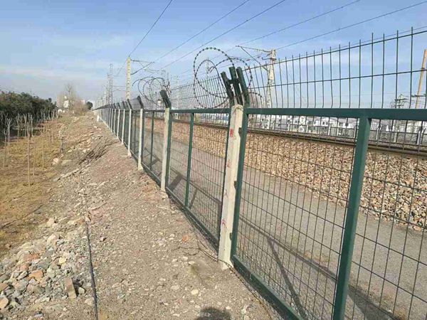 4.使用鐵路護欄網使圍界整體和諧、美觀。主要作為做鐵路兩側的隔離和的防護使用,是一種鐵路封閉場所專業用的隔離柵產品。它具有耐用、美觀、視野開闊的特點,并具有優良的防護性能。整個鐵路隔離柵采用立柱采用混凝土澆筑件,工程造價低,整體強度高、整體穩定性好,網體上的彩色塑層具有良好的抗腐蝕和裝飾效果。